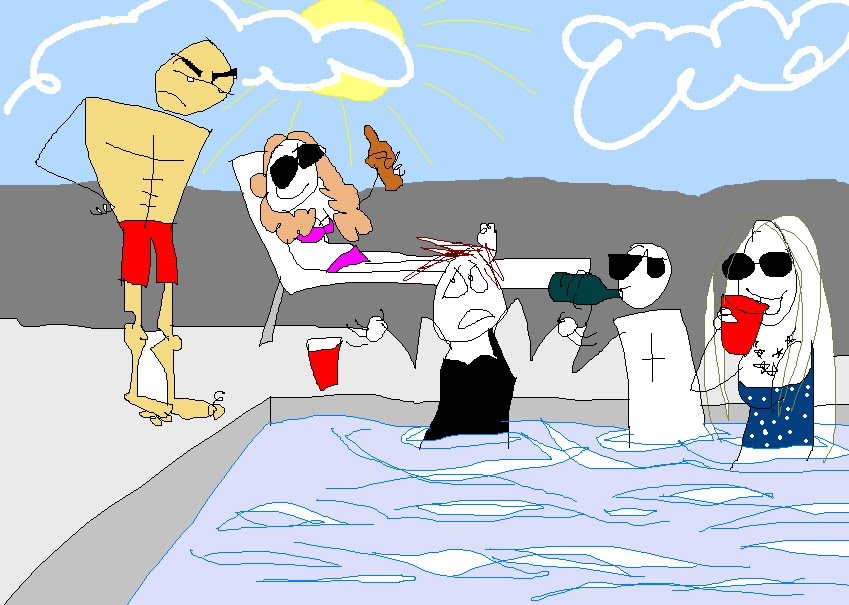 see how good i am now, signing in like i'm supposed to, not bringing glass or booze or too many guests into the pool? and my, what a nice new hairy look you're sporting! hehe...